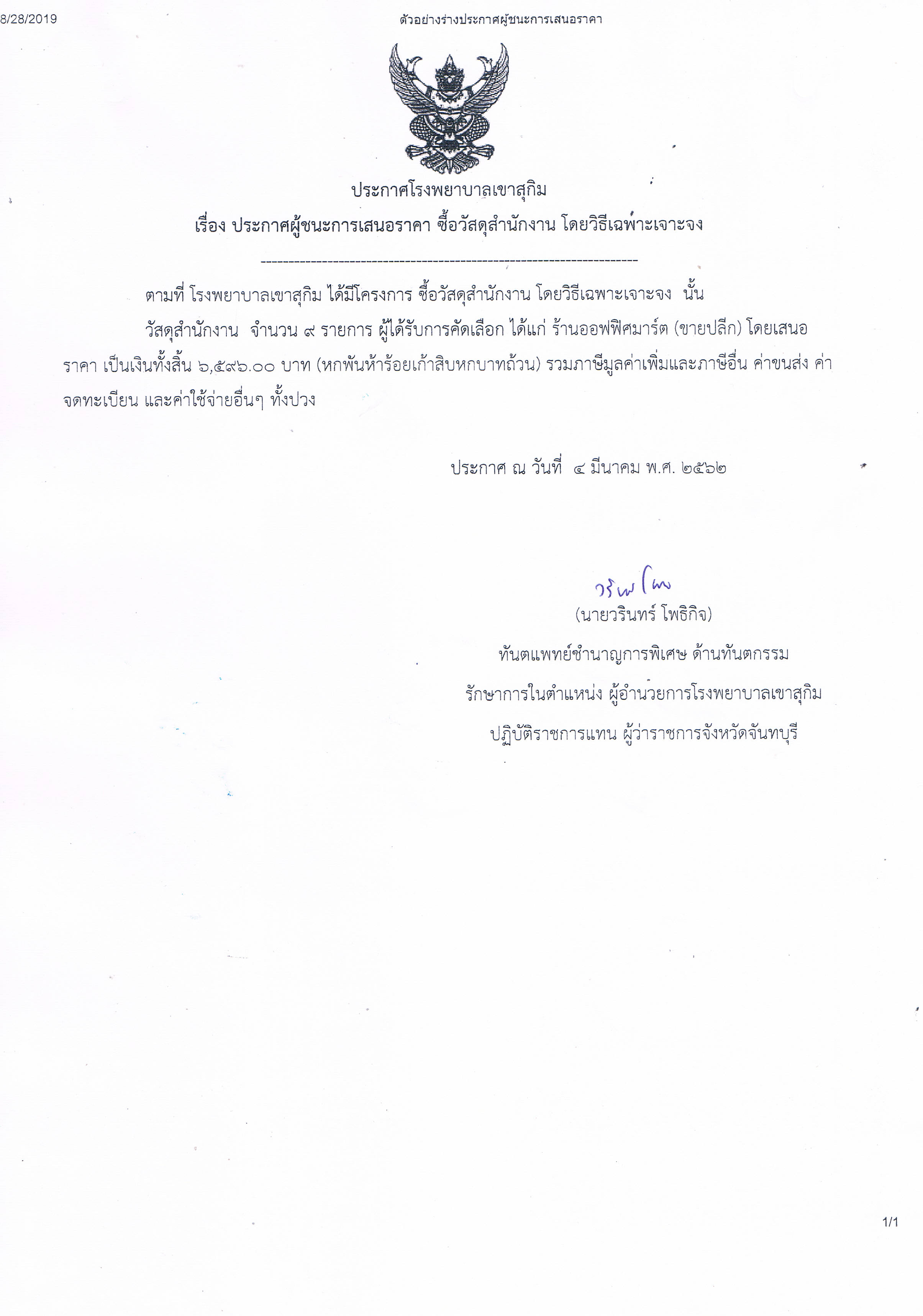 04 Sep 2019 ประกาศผู้ชนะการเสนอราคา ซื้อวัสดุสำนักงาน Attachments: ซื้อวัสดุสำนักงาน9รายการ.jpg[ ]432 kB